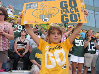 We took Caroline and Julia to the Packer Family Day at Lambeau Field in Green Bay. They had been wanting to go to see the "Go Packers" (as they call them) play. Because they can never make it through an entire game, we thought this would be perfect. And the tickets were only $10 each!!